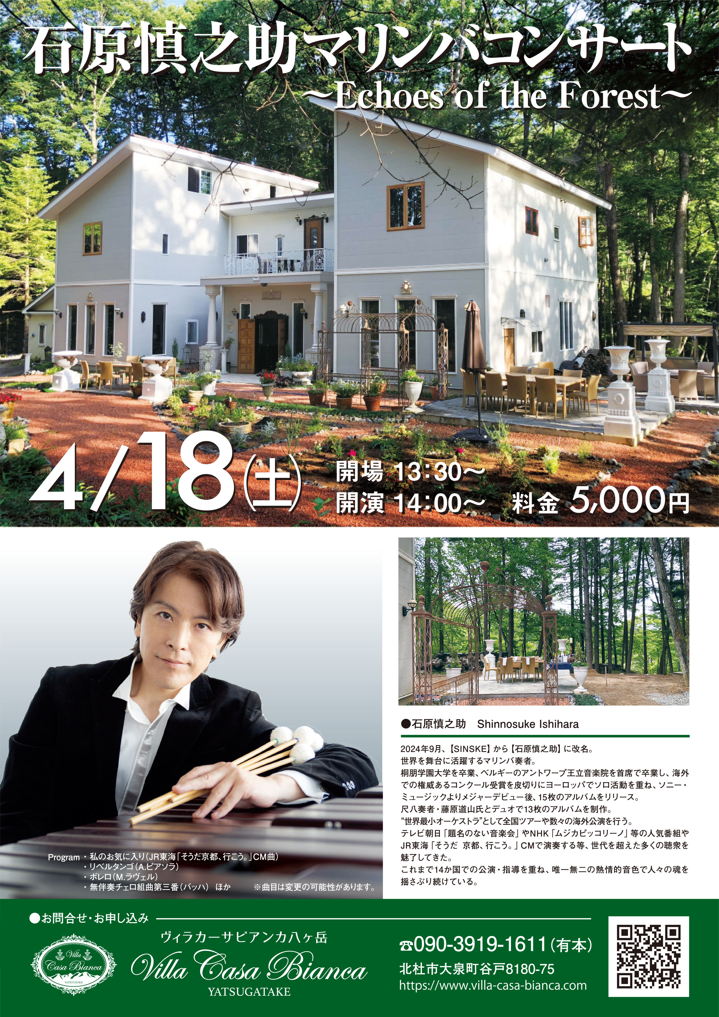 開場 13:30 / 開演 14:00@ヴィラ・カーサ・ビアンカ八ヶ岳(山梨県北杜市大泉町谷戸8180-75)